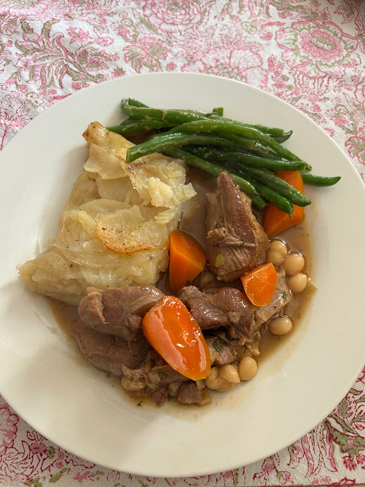 This lamb stew is based on a springtime stew from France, but it felt like the perfect thing to serve on a cool autumn Sunday. Growing up we would often have Irish stew at this time of year. I love Irish stew, but a French style navarin has an extra depth of flavour, and our family is not quite as poor as our Irish forebears so I’m grateful to have the luxury of being able to cook with wine instead of water (the latter would still produce a very tasty meal). You could use lamb or mutton if hogget isn’t available, I just happened to have some off-cuts in my freezer and think it brings a great depth of flavour.