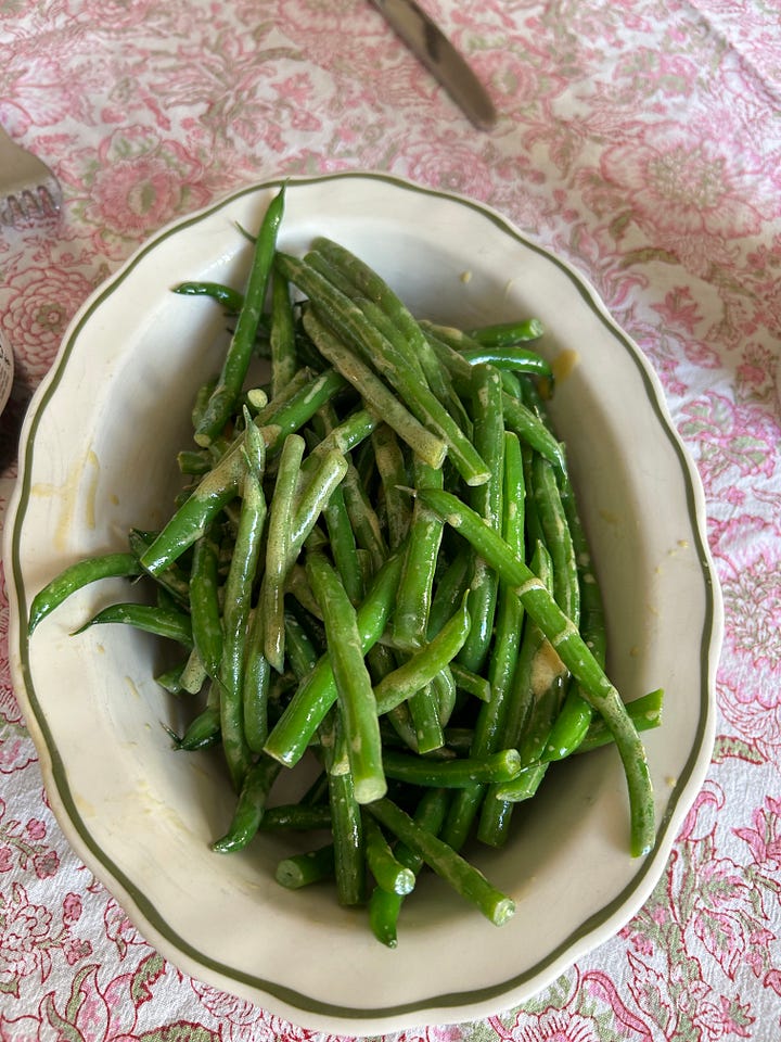 I served this with some boulangère potatoes, and green beans (blanched for a few minutes, and dressed with a vinaigrette of 1T shaoxing wine, 0.5T champagne vinegar, 2t dijon mustard, 1T olive oil, and some salt & pepper). Best served at the table, no need for frou frou plating.